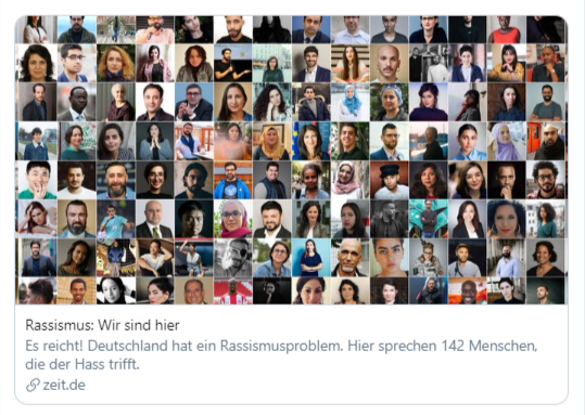 DIE ZEIT hat unter dem Titel “Wir sind hier. Es reicht! Deutschland hat ein Rassismusproblem” die Stellungnahmen von 142 in Deutschland lebenden Personen zusammengeführt, die von Rassismus betroffen sind und sich nun zum Attentat von Hanau äußern.
