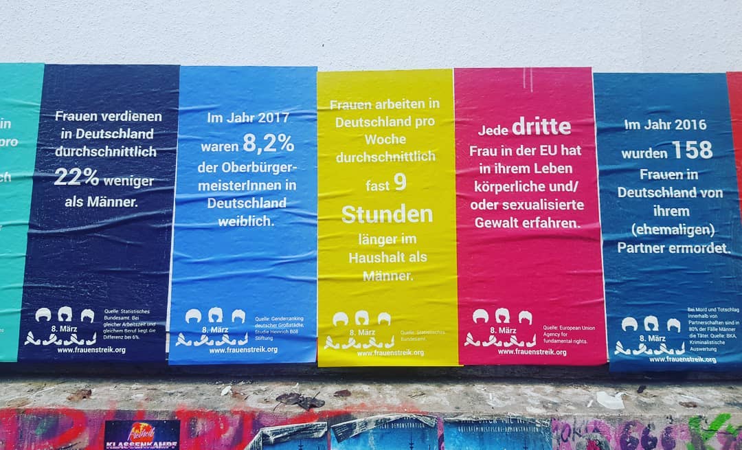 Hamburger Feminist*innen posten eine Transpi-Info-Reihe zum Frauen*Streik 2019:
