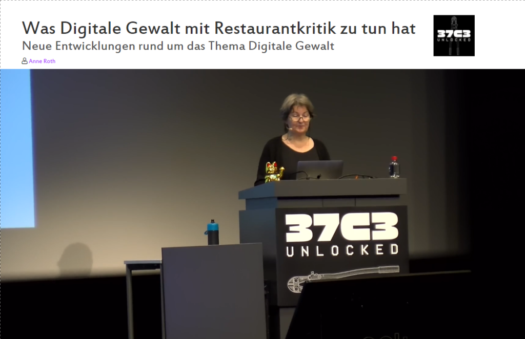 Anne Roth hat in ihrem Vortrag zu digitaler Gewalt aus feministischer Perspektive die Entwicklung der Debatte bis zum heutigen Tag sehr eindrücklich nachgezeichnet – kann ich sehr empfehlen [–> LINK ZUM VIDEO DES VORTRAGS].