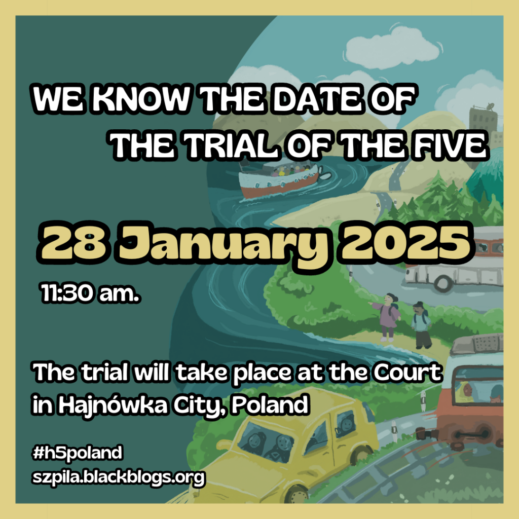 On 17 January, a trial began in the case of 10 people detained and charged after a demonstration in solidarity with those locked detained in the guarded centre for foreigners in Krosno Odrzańskie. The demonstration took place on 12 February 2022 and more than 10 people were detained by the police during the demonstration. Two years later, a trial was launched in which 10 people were charged with a whole range of charges, in various configurations: violation of an officer’s physical integrity (art. 222 Crime Code), active assault on an officer (art. 223 CC), forcing an action on an officer (art. 224 CC), insulting an officer (art.226 CC). In addition, the individuals are charged with participation in a riot with the intent to violently assault persons and property and a hooliganism offence was added – raising the possible sentence.