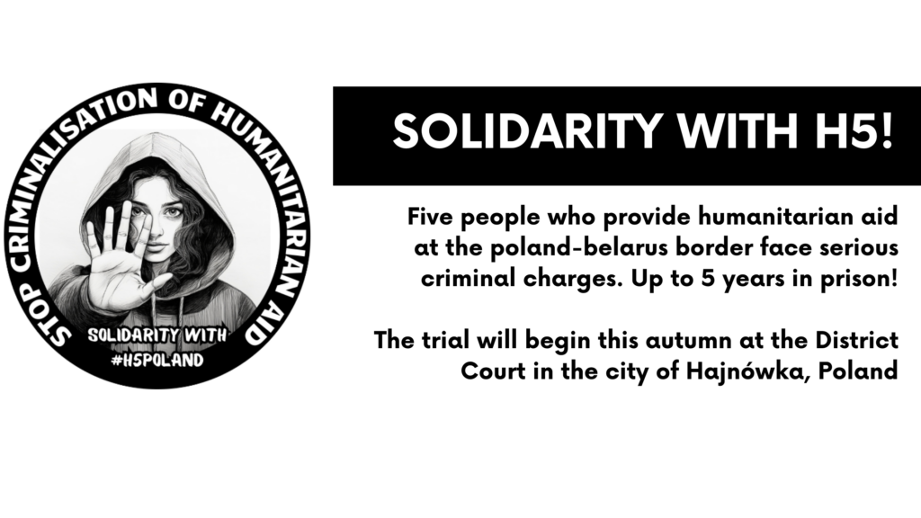 Fünf Menschen, die humanitäre Hilfe an der polnisch-belarussischen Grenze leisteten mit schweren strafrechtliche Vorwürfen. Ihnen drohen bis zu 5 Jahre Haft!
