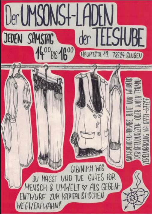 (Infos: Als Gegenentwurf zum kapitalistischen Wegwerfwahn! Tue Gutes für dich & dein Umfeld, gib’ Dingen ein neues Zuhause oder überlasse sie wem anders wenn du sie nicht mehr brauchst.