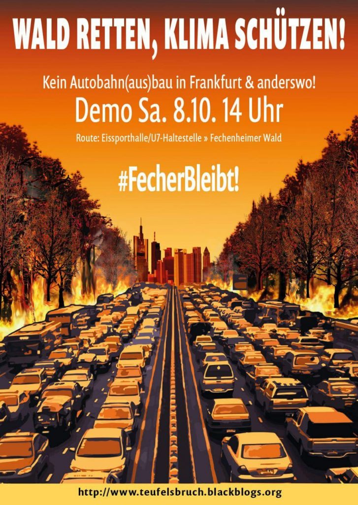 Wir stellen uns entschlossen gegen den Autobahnausbau der A66/A661 durch den Riedwaldtunnel und protestieren gegen die Waldrodung vom Fechenheimer Wald und Teufelsbruch