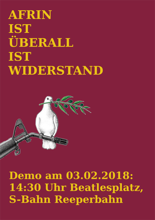 16.00 Uhr Bündnis-Demonstration, Frieden für Afrin, Hachmannplatz/Hbf.