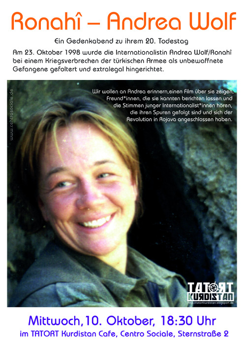 10.10.18: Ronahî – Andrea Wolf | Ein Gedenkabend zu ihrem 20. Todestag