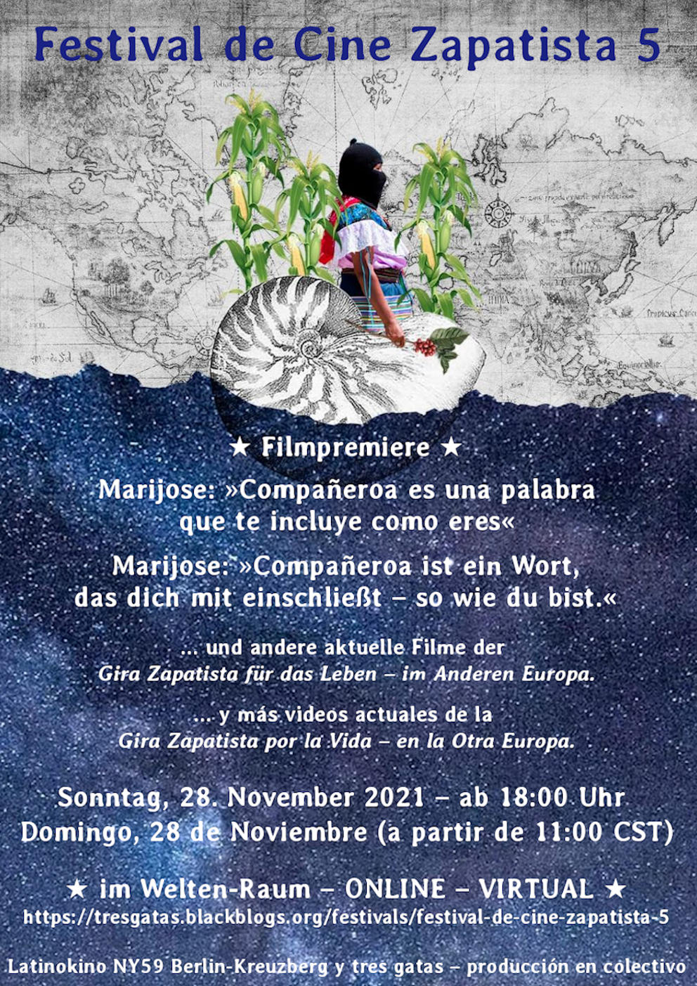 Wir bitten Euch, dass Ihr Euch aus Euren Geographien heraus, gemäß Euren Modi, Zeiten und Eurer Kreativität, mit anschließt – mit dem Ziel dies öffentlich zu machen und die zapatistischen Familien wissen zu lassen, sie stehen nicht allein. Auch um unsere Organisierung/unsere Verbindung zu zeigen – angesichts dieses Krieges gegen das Leben und gegen die Autonomie der zapatistischen Pueblos. […]«