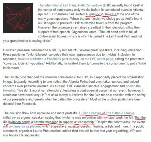 Raven also seems to mix BDSM with paganism, and he calls himself an “ordeal master”. Ordeals are the act of putting assumably consenting parties through situations that can involve intense physical and mental pain in order to attain some sort of “spiritual” consciousness and can be a form of worship in the religious practice. Consenting parties should be fully free to engage in indulgent behavior; the problem, though, is that Raven has been accused of abusing naive people who are new to paganism who end up getting raped. He’s also been accused of falsely linking sadistic sexual acts to the Hindu Kavadi ceremony and the Lakota Sun Dance, which has been called misappropriation and racist.