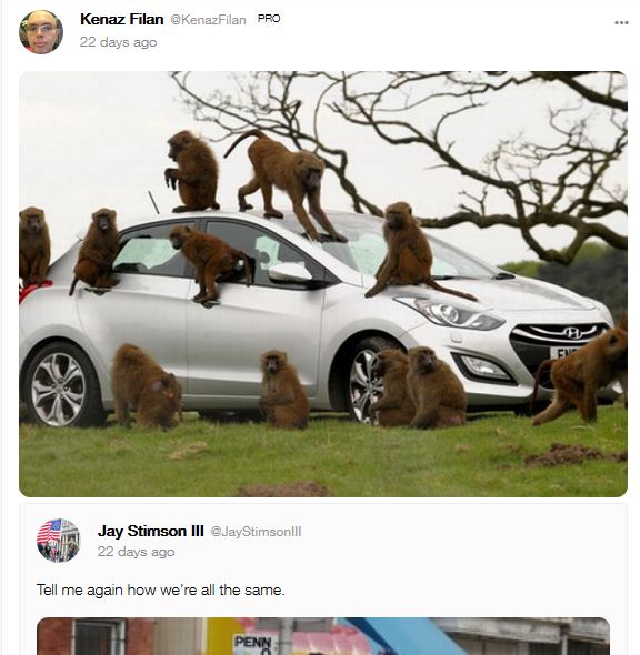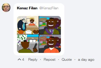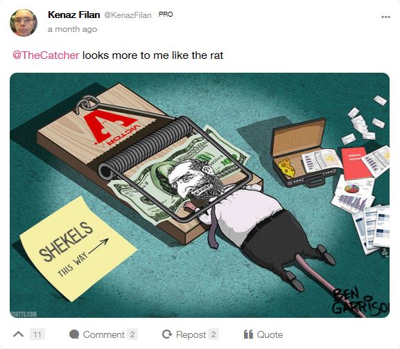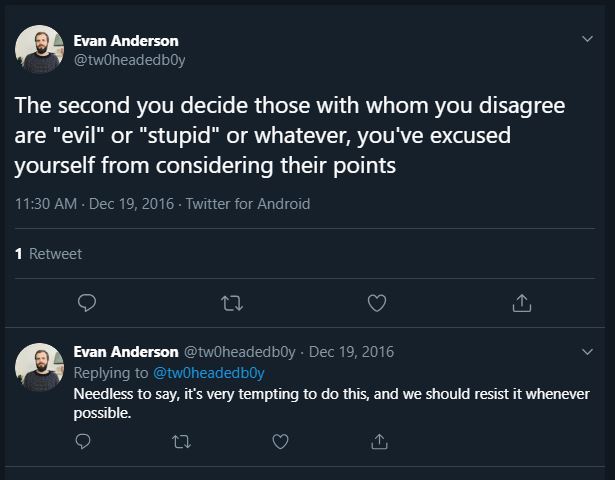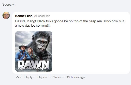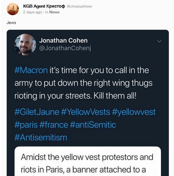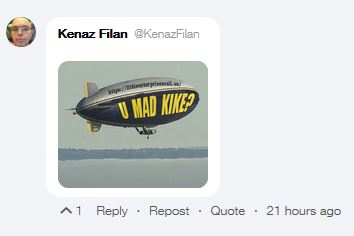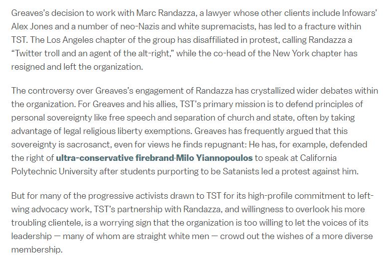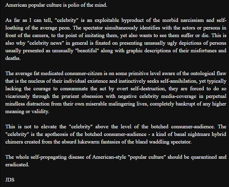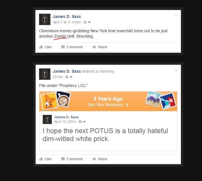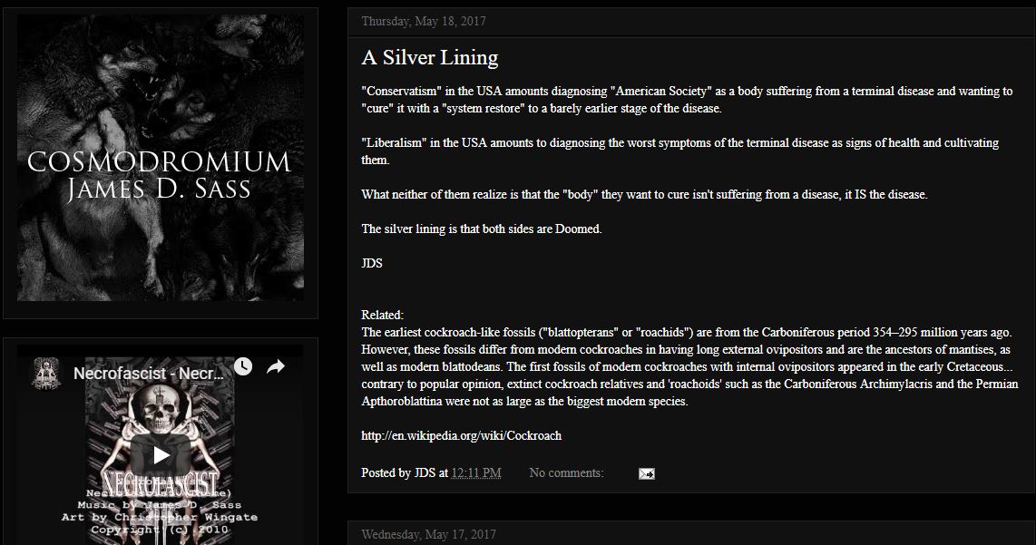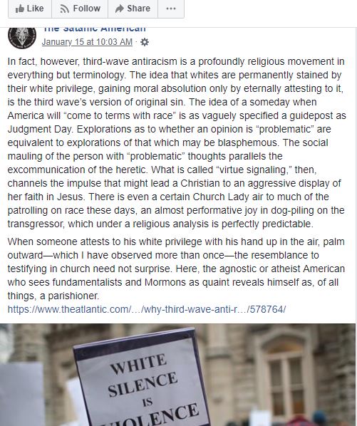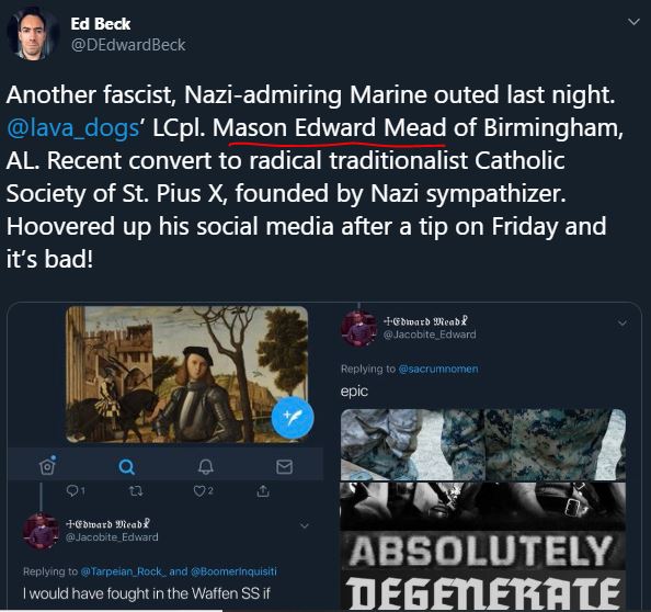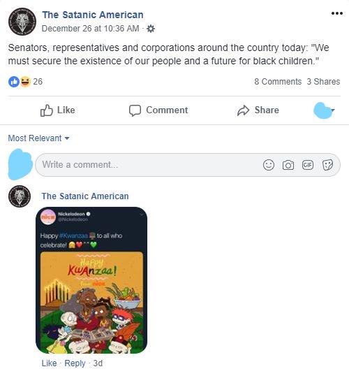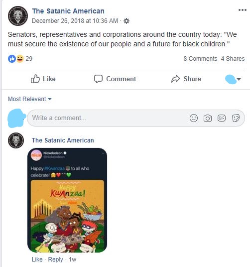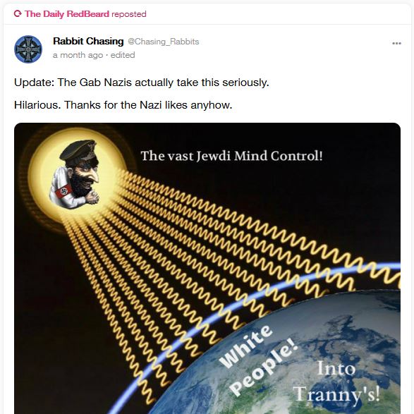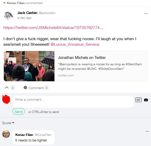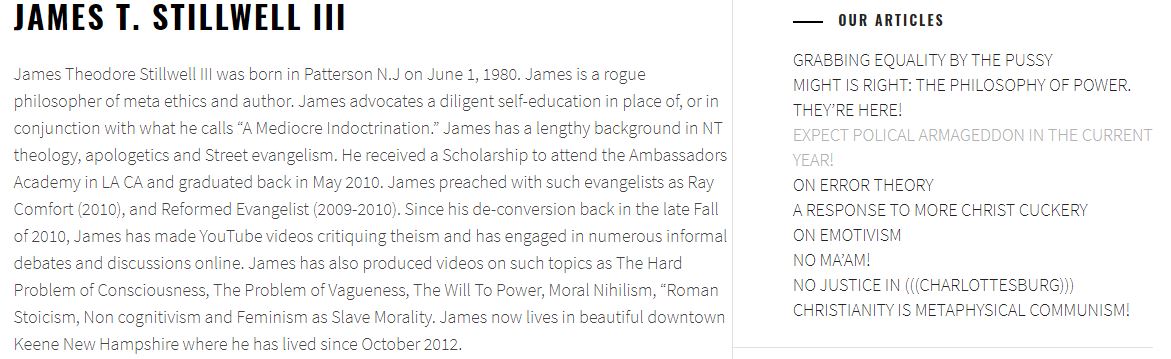 Secondly, she keeps company with fascists and she links to blog posts from them; specifically, she’s friends with outright nazi Church of Satan member Kenaz Filan and she’s advocated and platformed his blog Europa’s Children, wherein he can be seen making bad faith arguments and furthering fascist talking points for an ethnostate and white nationalism. Kenaz, by the way, is an explicit nazi who furthers the conspiracy theory that James Alex Fields Jr. ran over a crowd at the deadly Unite the Right rally in self-defense and is innocent of committing murder. Kenaz interacts with other fascists on his Gab, like Daniel McMahon AKA Jack Corbin, and his Gab posts include inciting violence and spreading around literal anti-Semitic propaganda from nazi Germany. He’s also harassed a vulnerable person on Twitter in the aim of getting them to kill themselves. Galina apparently has no problem with this bigoted behavior and she seems to hold Kenaz in high regard.
