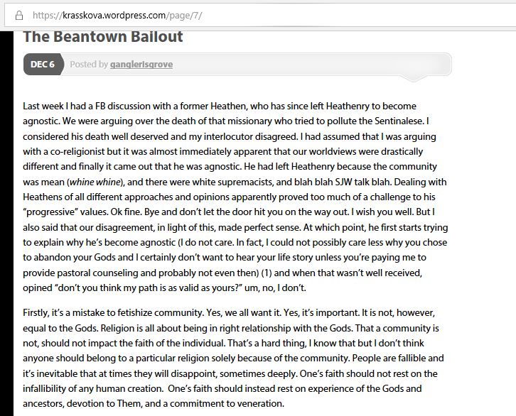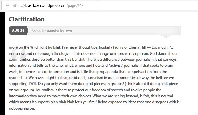 There are numerous troubling threads online that discuss other troubling things with her, such as abuse and further bigotry. We can’t confirm the veracity of some of the claims made on these sites, as no links were given backing up certain claims. However, people should be aware of the accusations being made in light of what we’ve already reported on in this article. If one can’t be bothered to read entire pages, we recommend doing a quick search with keywords such as “Galina Krasskova”, “abuse”, “discrimination”, “racism”, “fascism”, “nazism” etc.