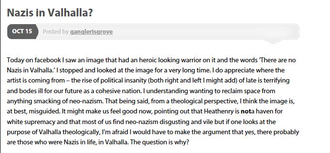In browsing the web and looking over her blog, more than a few problematic things become manifest. First of all, she defends and sympathizes with fascists and fascist pagan groups such as the Asatru Folk Assembly.