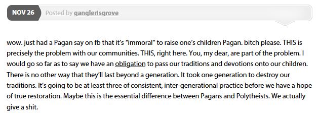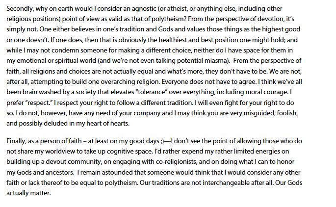 Let’s examine some of her content, as well as conversations had about her by other polytheists and pagans.