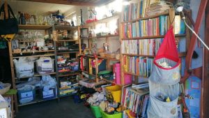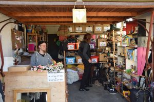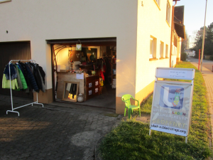 Freitagmittag in einem Hof in der Grundackerstraße. Die Garage ist geöffnet. Der zweieinhalb auf fünf Quadratmeter große Raum gleich einem kleinen Lädchen. Neben einer Theke stehen Holzregale. Darin erblickt man Bücher, Spielsachen, Kleider, Haushaltswaren und sogar Lebensmittel …