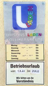 Auf Grund von Personalmangel und Krankheitsfällen müssen wir im Juni zwei Wochen den Umsonstladen leider schließen. Die Zwangspause geht vom 6. Juni 2022 bis zum 19. Juni 2022. Somit werden wir am Dienstag den 21. Juni 2022 wieder im vollen Umfang für euch da.