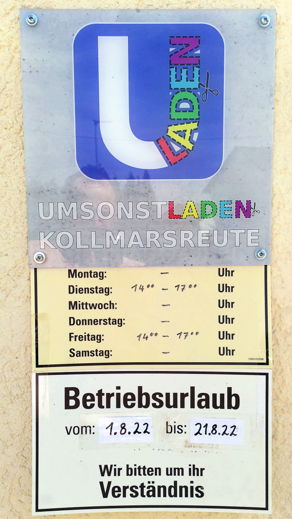 Ab den 1. August 2022 sind wir mal wieder im Sommerurlaub. Ich hoffe ihr geniest die Zeit und wir sehen uns in vier Wochen wieder. Unser Betriebsurlaub geht 3 Wochen und der erst Öffnungstag wird dann der Dienstag am 23. August 2022 sein. Nutzt die Zeit sinnvoll und wenn ihr Dinge habt die ihr verschenken wollt, wartet nicht auf uns, es gibt auch viele andere Wege der Verschwendungsgesellschaft eigenmächtig entgegen zu treten.