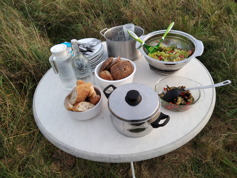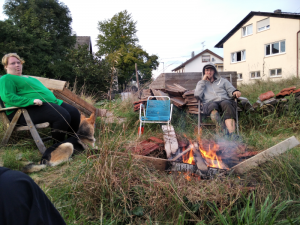 So haben wir dies auch genutzt und uns was vom Essen abgezwagt und ein kleines veganes Festmal für die Abendstunden zu zubereiten. Nach getaner Arbeit haben wir es uns dann am Lagerfeuer gut gehen lassen und uns noch Anekdoten von Umsonstladen