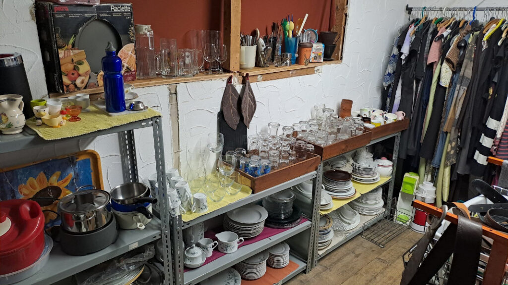 Es war nicht immer einfach sich auf alles gleichzeitig zu konzentrieren, da an diesem Tag auch einiges an Ware angekommen ist und die Kundschaft auch betreut werden musste. So hatten die Leute aus Nürtingen auch die Gelegenheit gehabt den Umsonstladen in Aktion zu sehen und sich selbst umzuschauen. Denn ein Umsonstladen lebt vor allem davon wer ihn besucht.