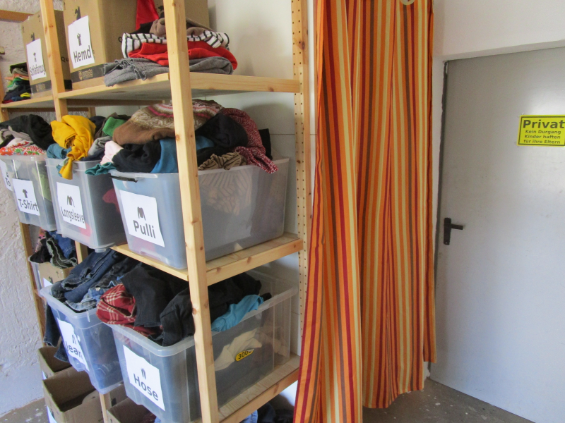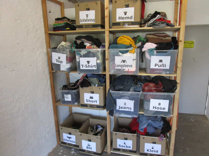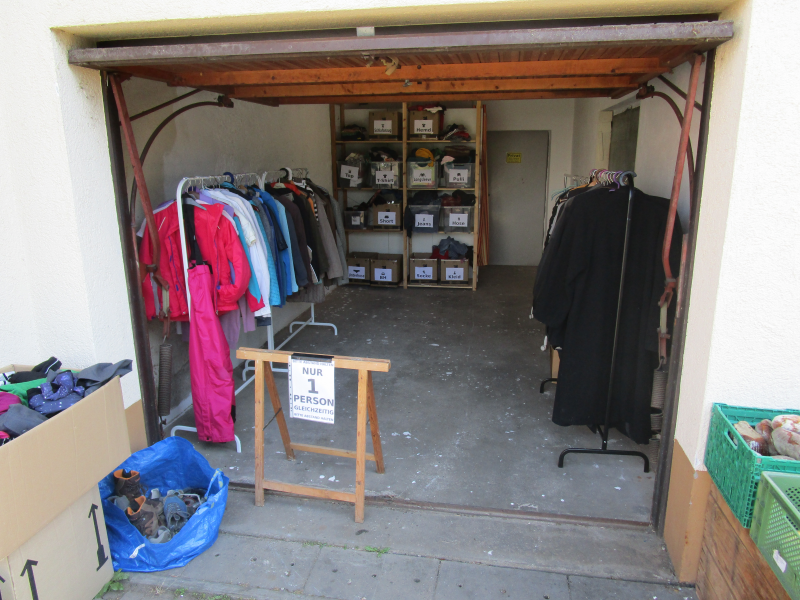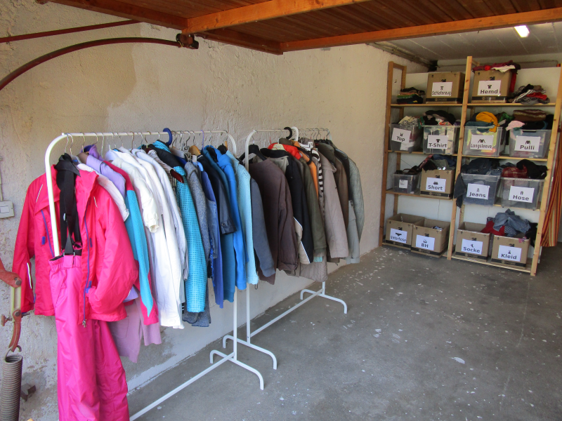 Seit Anfang Juni gibt es nun eine zweite Garage für den Umsonstladen. Das bedeutet mehr Platz für tolle Dinge und Leute die etwas suchen. Mehr Platzt bietet auch eine bessere Möglichkeit die reichhaltigen Artikel zu sortieren. Die zweite Garage soll explizit für Klamotten werden. Hier haben nun die Kleiderständer und das erste Regal einen Platz gefunden. Weitere Regale sollen noch folgen. Also falls ihr noch ein IVAR Regal zuHause habt und es nicht mehr benötigt, dann könnt ihr euch gerne bei uns melden. Als zusätzlichen Feature gibt es nun sogar eine Umkleidekabine. So können die interessanten Stücke jetzt auch gleich vor Ort anprobiert werden.
