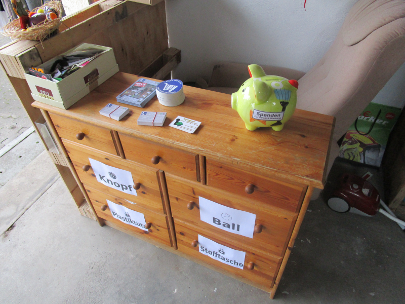 Kommt gerne zum Stöbern vorbei es gibt vielle tolle Dinge. Von Büchern, DVD’s, Haushaltssachen, Elektronik bis Spielzeug alles mögliche dabei. Auch Klamotten und Schuhe für groß und klein werden immer mehr. Gerne erzählt auch euren Bekannten vom Umsonstladen, damit die Kostbarkeiten schnell wieder ihre Bestimmung finden und nicht nur rumliegen.