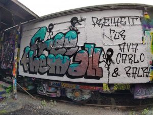 vor kurzem ist in Jena ein Graffiti aufgetaucht, dass groß und deutlich die Freiheit für unsere Freund*innen fordert!