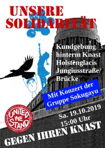 Kommt Silvester zum UKnast Holstenglacis um zusammen mit den Gefangenen in das neue Jahr zu starten! Außerdem wird es zum ersten Prozesstag am 08.01. ab 12 Uhr eine Kundgebung vor dem Landgericht geben!