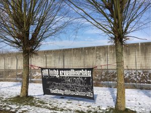 Bei schönstem Winterwetter und strahlendem Sonnenschein kamen auch am 4.3. wieder ca. 80 solidarische Menschen mit zur JVA Billwerder die G20-Gefangenen besuchen. Bei veganem Chili, Kaffee und belegten Brötchen wurden Reeden gehalten, Musik gespielt und sogar goldene Luftballons mit „Free Hugs for Blacks Blocks“ steigen gelassen.