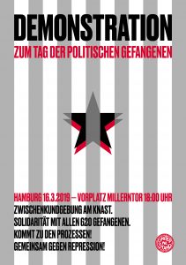 Wir werden zum diesjährigen Tag der politischen (- nicht nur der G20!) Gefangen demonstrieren, um zu zeigen, dass niemand vergessen und niemand allein gelassen wird. Denn eines kann kein Staat einer Bewegung nehmen: Die Solidarität. Kommt mit uns auf die Straße: