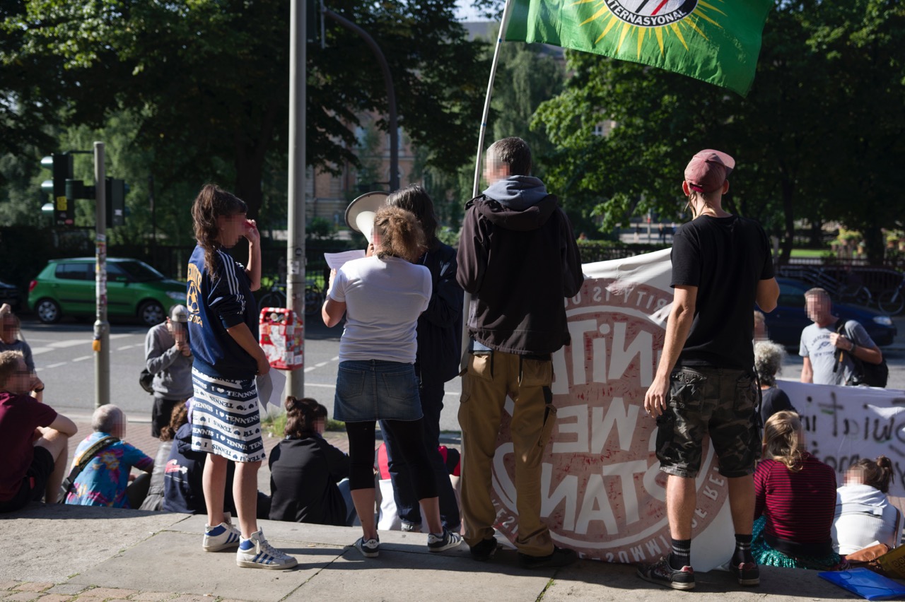 Kundgebung 28.8.2017, Amtsgericht Hamburg, Sievekinplatz Posted on 10. September 2017 by g20redak Kundgebung3 ◄ Zurueck Vor ► Bild 5 von 6