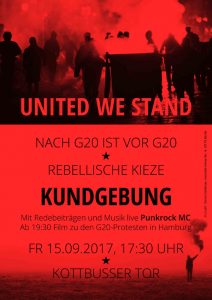 Gemeinsam weiter kämpfen gegen die Welt der G20, gegen weltweite Ungerechtigkeit, gegen Ausbeutung, Rassismus, Sexismus und alle die anderen beschissenen Diskriminierungen und Ausgrenzungen, und für ein gutes Leben ohne Angst für alle und überall!