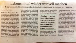 TA-Artikel zur Infoveranstaltung “Solidarische Landwirtschaft am 12.Oktober 20 im Weltladen in Nordhausen