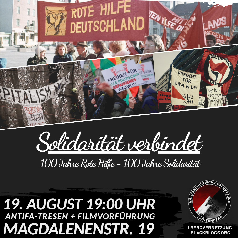 +++ 19. August 2024 – 19 Uhr – AVL-Tresen – Filmvorführung: Solidarität verbindet — 100 Jahre Rote Hilfe +++
