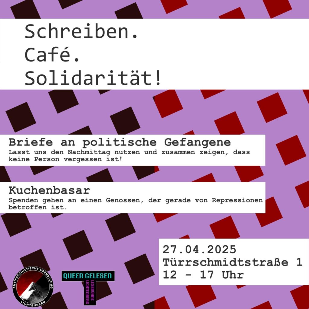 Schreiben.Cafe.Solidarität – Schreibcafe und Solidaritätsnachmittag in der Türrschmidtstraße 1 am 27.4. von 12 bis 17 Uhr
