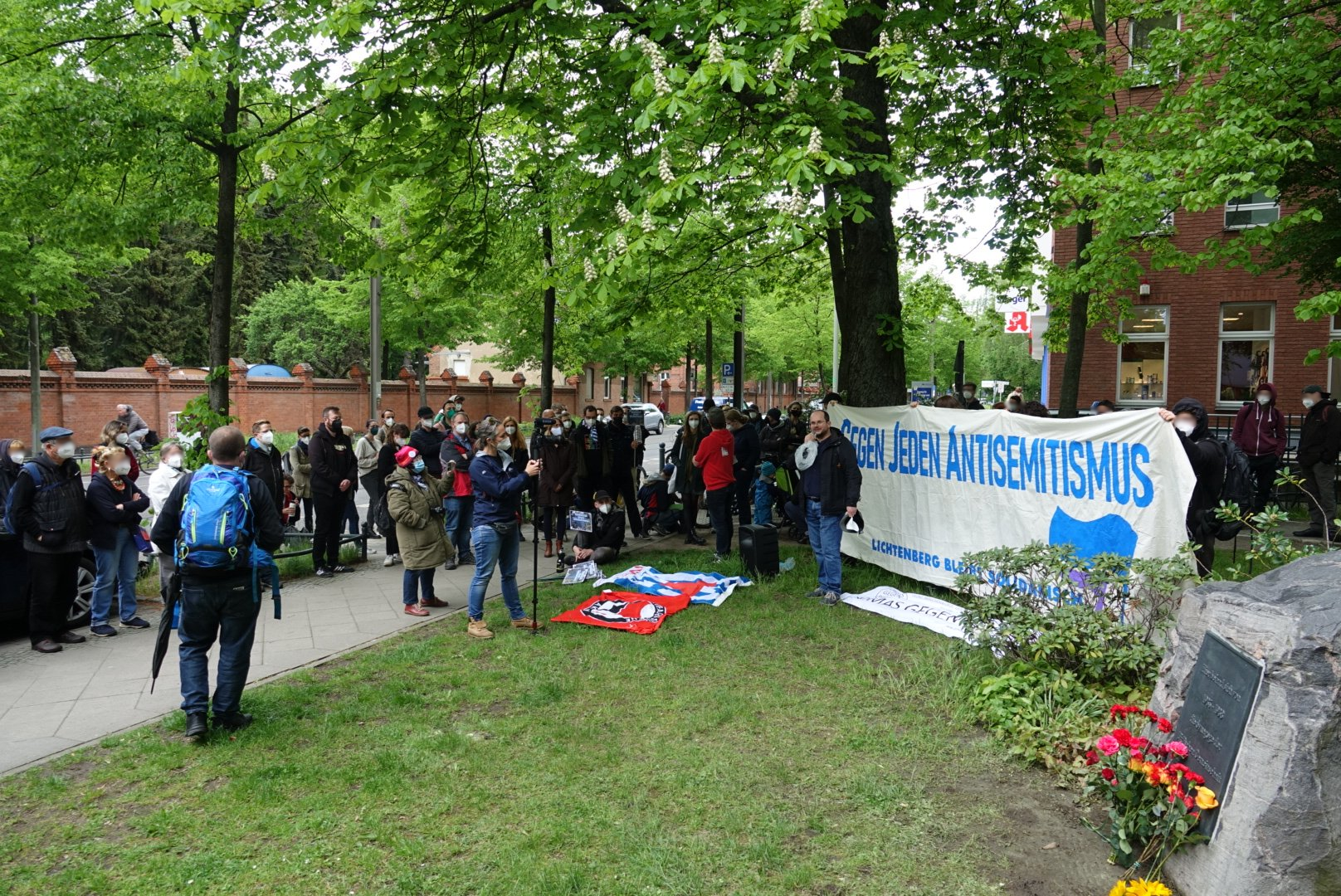 Vor 10 Tagen noch haben wir den 76. Jahrestag der Befreiung vom deutschen Faschismus gefeiert. Überschattet wurde dieser historische Tag in Lichtenberg dieses Jahr von einem Aufmarsch sogenannter “Querdenker*innen”, die wenige Tage zuvor durch unsere Kieze zogen und teils antisemitische Verschwörungserzählungen verbreiteten. Und jetzt, wenige Tage später, müssen wir auf ein geschändetes jüdisches Mahnmal blicken. Das zeigt doch sehr konkret wie gesellschaftsfähig antisemitischer Hass geworden zu sein scheint, aber auch, dass dieser nie weg war und dass antifaschistische Arbeit zu jedem Zeitpunkt notwendig war, ist und bleibt.