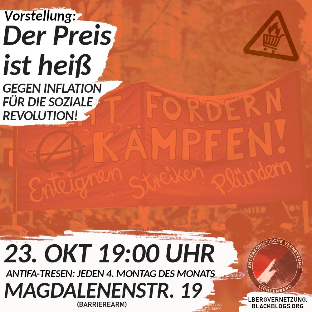 Neben einer Vorstellung ihrer neuen Kampange „Alles zu teuer“ (vielleicht habt ihr die Plakate davon schon bei euch im Kiez gesehen) wollen wir mit ihnen darüber sprechen, wie wir den diesjährigen Herbst vielleicht etwas „heißer“ gestalten können. Also kommt zahlreich, es wird wie immer spannend.