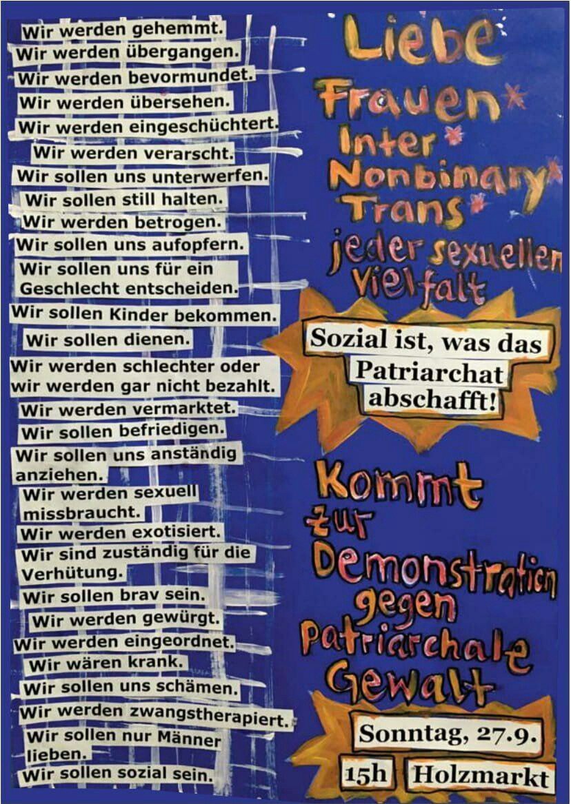 Wir solidarisieren uns mit allen Betroffenen und organisieren uns als FLINT*.
