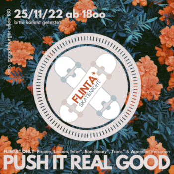 Am 25.11 von 18:00-ca.21:00 laden wir alle FLINTAPersonen [Frauen,LesbenInter,Non-BinaryTrans, Agender*] zum gemeinsamen skaten, quatschen und rumhängen ins veto ein.