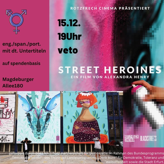 *Street Heroines* (2021, 72 Min) - von Alexandra Henry ist ein preisgekrönter Dokumentarfilm, der den Mut und die Kreativität von Frauen feiert, die trotz mangelnder Anerkennung von Anfang an ein fester Bestandteil der Graffiti- und Street-Art-Bewegung waren. Continue reading