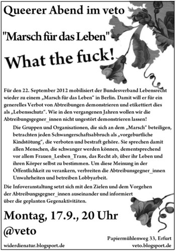 Was? Seminar der Gruppe „Wider die Natur“, am queeren Montagabend