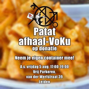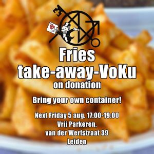 Breng je eigen snacks. Er zullen wel frietjes worden gemaakt.