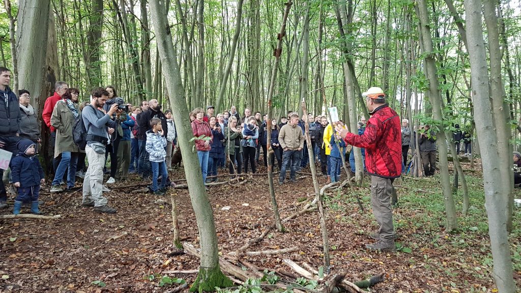 Dieses Bild ist am 03.10.19 entstanden. Mit einem Filmteam des ZDF sind ca 300 Menschen aus den umliegenden Dörfern zu einem spontanen Waldspaziergang zur Waldbesetzung gekommen.