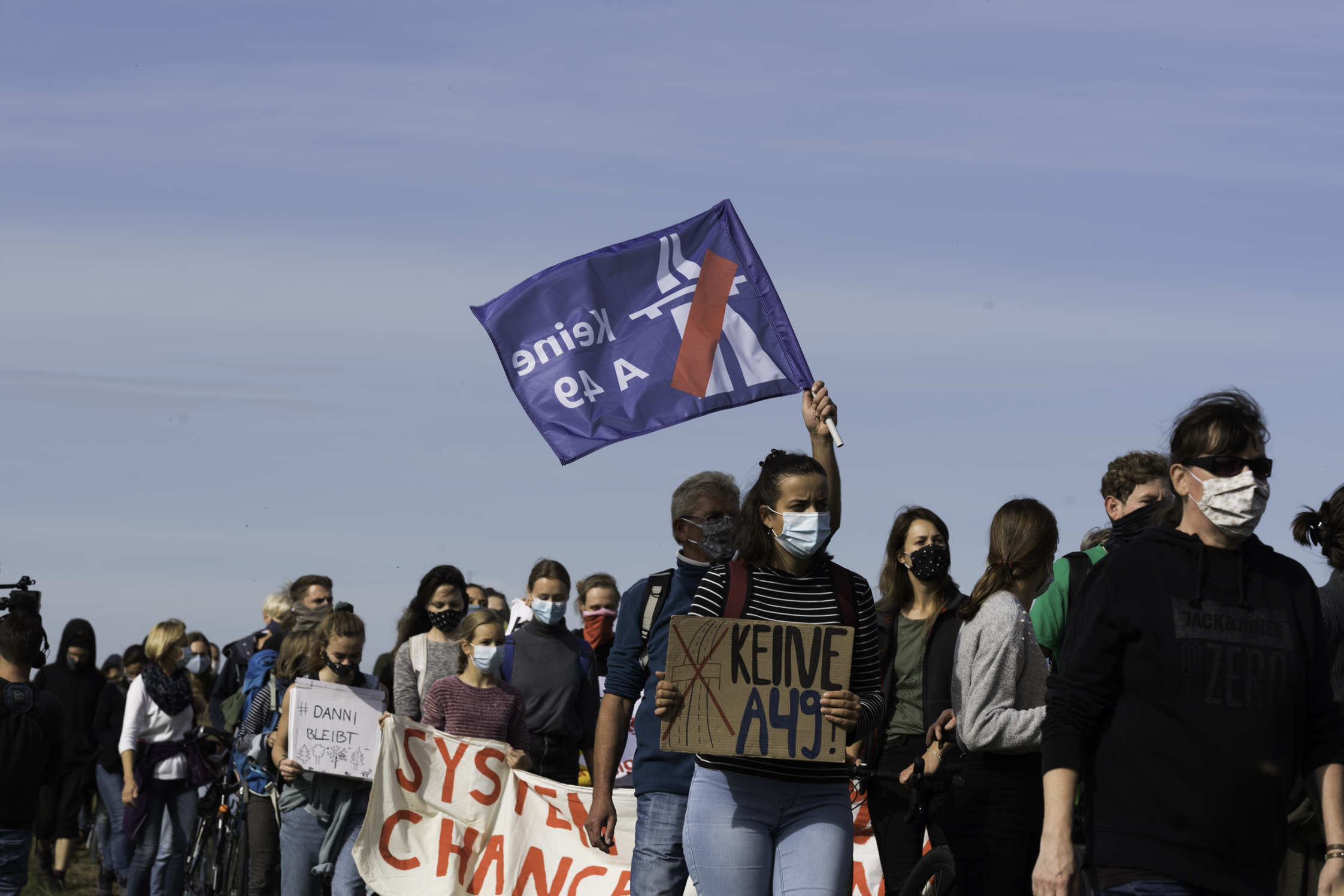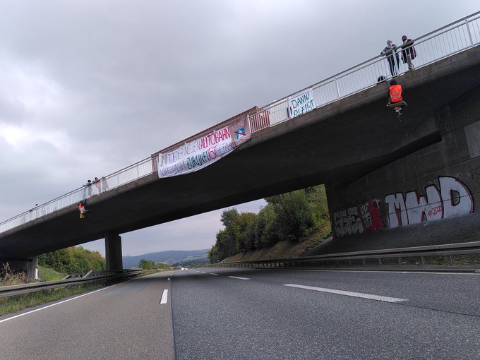Eine Autobahnbaustelle der A49 wurde von Aktivistis blockiert. Die Fahrraddemo von Kassel in den Danni machte bei der Blockade einen kurzen Zwischenstopp und kam erschöpft aber glücklich abends im Danni an. Am Ende eines erfolgreichen Tages wurde auf der Bühne ein schönes Konzert gespielt.