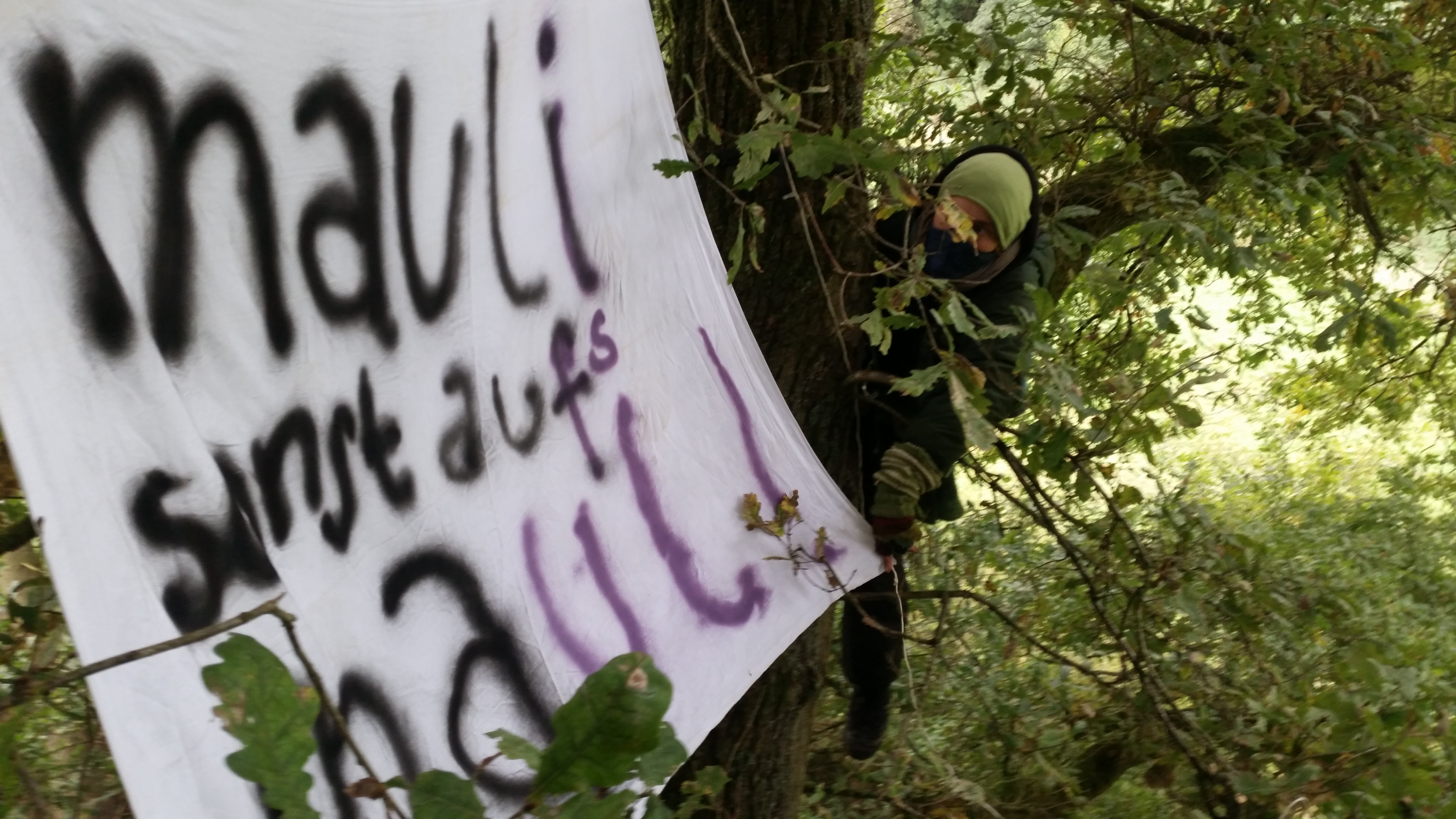 Lebenslaute spielt im Mauli bleibt! Fällarbeiten im Mauli gehen unter lebensgefährdeten Maßnahmen weiter: Es wird bis zu 5 Meter nah an den Bäumhäusern gefällt.