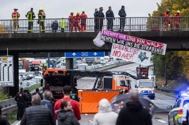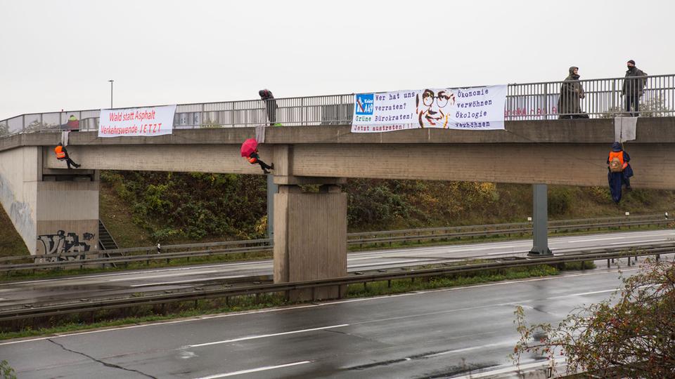 Frankfurt, 26.10.20. Mehrere unabhängig voneinander operierende Gruppen haben heute zum Wochenbeginn verschiedene Autobahnen blockiert. Die Aktion soll unter anderem Druck auf die hessische Landesregierung ausüben, insbesondere die Grünen, die alle ökologischen Werte mit ihrer Zustimmung zum Weiterbau der A49 verraten und damit die Lebensgrundlagen der jungen Generation gefährden. Zuletzt wurde auf der Landesmitgliederversammlung am Samstag mit starker Mehrheit ein Antrag abgelehnt, der das Ende der schwarz-grünen Koalition im Falle eines Nicht-Baustopps forderte.