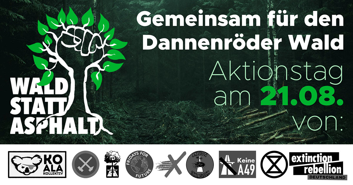 +++ Bundesweites „Wald Statt Asphalt-“ Bündnis fordert Erhalt des Dannenröder Waldes +++ Dezentraler Aktionstag am 21. August 2020 angekündigt +++