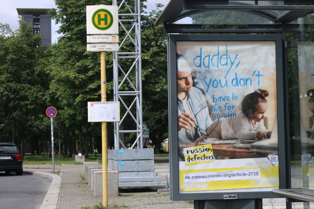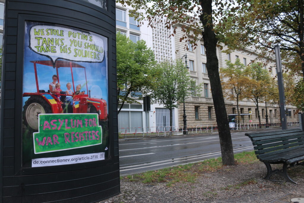 On Indymedia, we saw that there are busted advertisements displayed in Berlin this weekend, demanding asylum for conscientious objectors from Russia, Belarus and Ukraine. Because Indymedia tends to be down very often and we think the action is very nice, we’re mirroring it here. What follows is the text of the group “Asylum for conscientious objectors now!” (AfCOn!)