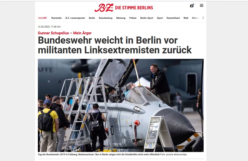 Für die BZ (in Berlin verkauft der Medienkonzern Springer nicht die BILD, sondern BZ) hat der stellvertretende Chefredakteur Gunnar Schupelius die Nachricht, dass die Bundeswehr den „Tag der Bundeswehr“ aus Berlin abzieht, aufgegriffen. Er ärgert sich sehr darüber: