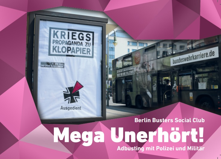 Der Berlin Busters Social Club setzt nach seinem spektakulärem Debutwerk „Unerhört: Adbusting gegen die Gesamtscheiße“ (2019) jetzt noch einen drauf. In Kooperation mit dem Buchladen Schwarze Risse findet der Book Release des neuen Werkes „Mega unerhört: Adbusting mit Polizei und Militär“ am Dienstag, den 7. Februar 2023 um 20h im Großen Saal in den Mehringhöfen statt.