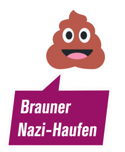 Ein Kackhaufen-Smiley, mit dem Schriftzug „brauner Nazihaufen“. Damit wird auf die Nazistrukturen und Rechtsradikalismus in der Bundeswehr hingewiesen. - Kotz-Smiley