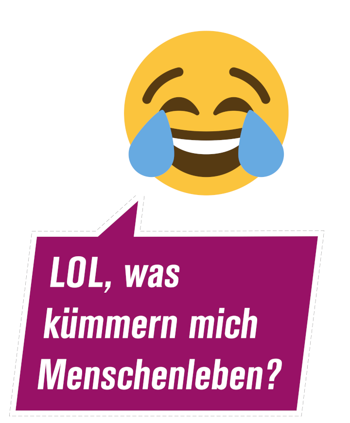 Ein tränender Lach-Smiley, der trocken verkündet: „LOL, was kümmern mich Menschenleben?“ und somit das wahre Gesicht der Bundeswehr zeigt. - Kackhaufen