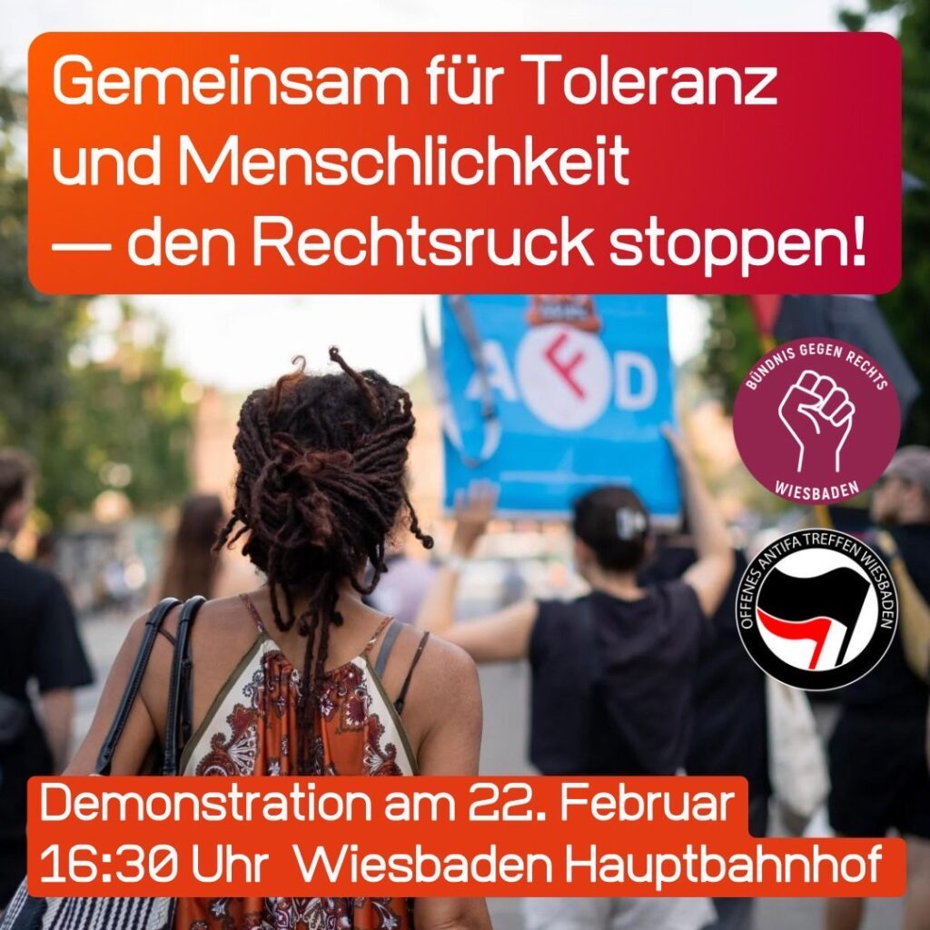 Das Wiesbadener Bündnis für Demokratie ruft am 19. Februar zu einer Mahnwache auf. Kommt ALLE!