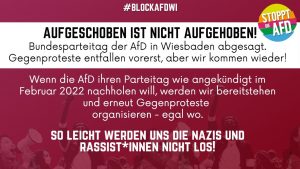 Presseerklärung: Aufgeschoben ist nicht aufgehoben! Proteste gegen AfD-Bundesparteitag in Wiesbaden vorerst abgesagt